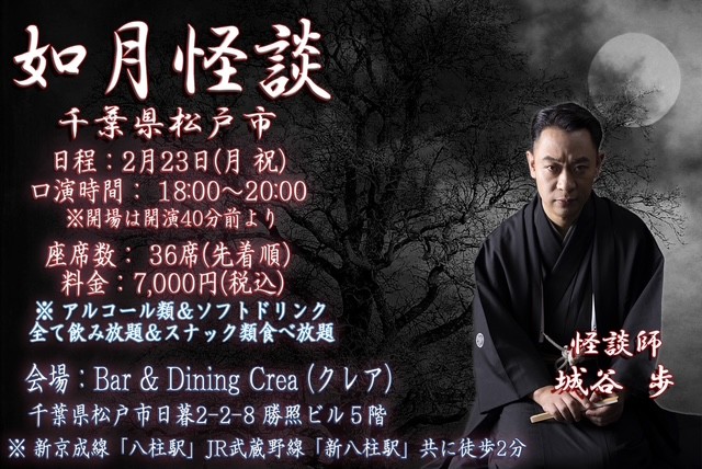 千葉県松戸市Bar&DiningCrea独演会【如月怪談】千葉県松戸市Bar&DiningCrea独演会【如月怪談】